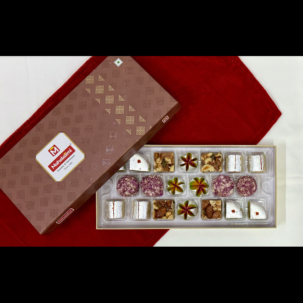 Assorted of Dryfruit Kasata, Anjeer Dryfruit, Kaju Kamal Bhog, Dryfruit Roll & Rose Crunch Ball