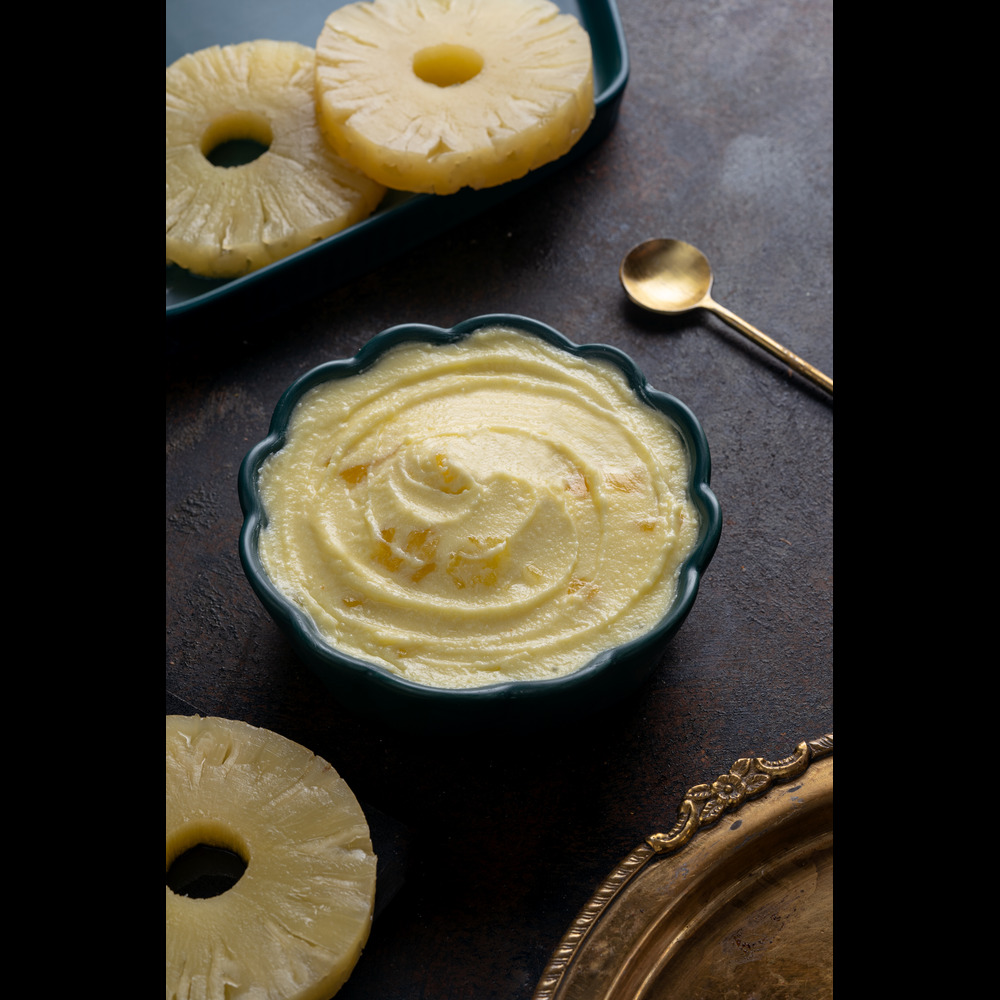 Milk, Pharma Grade Sugar, Pineapple Slices, Cardamom & Added Curd Culture