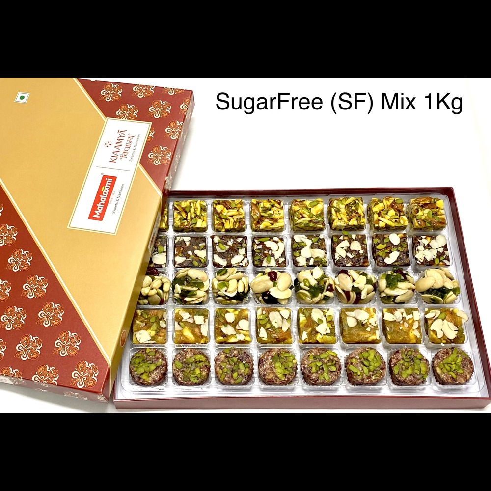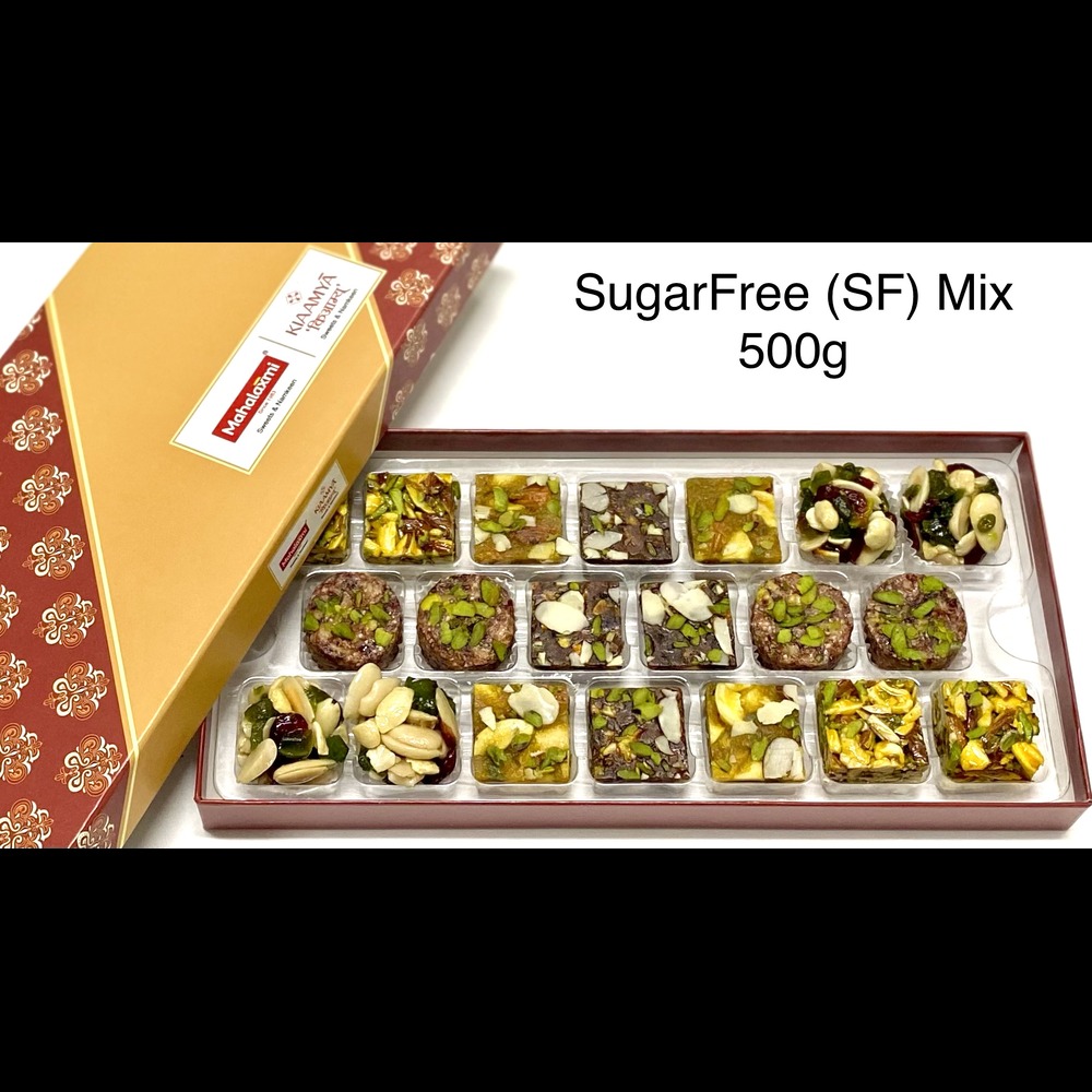 Assorted of SF Fruit N Nut Ladu, SF Pancham (Apricot based), SF Cranberry Walnut, SF Khajoor Dryfruit & SF Keshar Honey Pak.